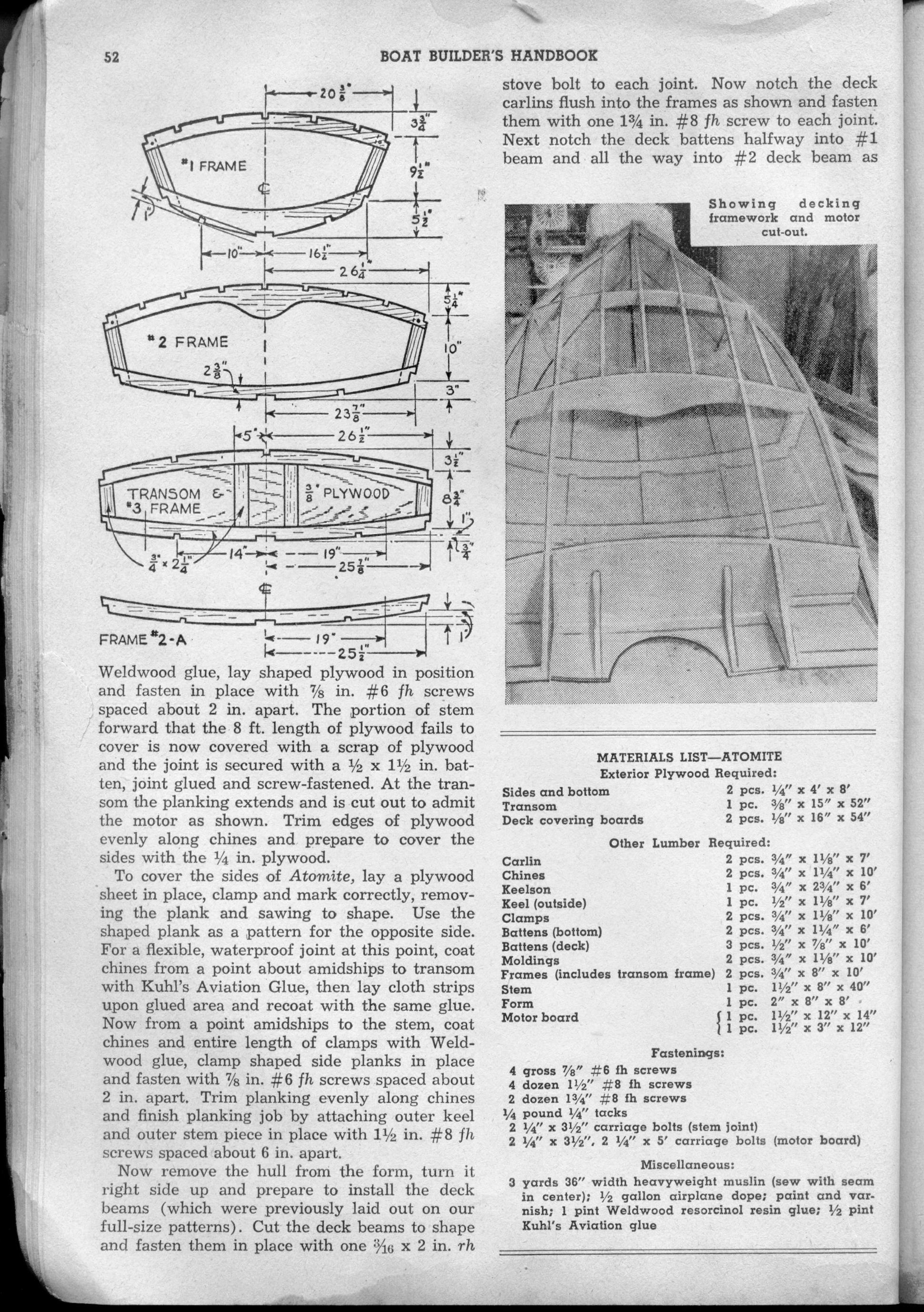 Atomite - By WILLIAM D. JACKSON. Atomite is a fast and furious, but at the same time, highly maneuverable 9 1/2 ft. out board hydroplane, designed for outboard motorsof 7 1/2 to 10 hp or larger. You can't beat this tiny hydroplane for high-speed fun afloat.